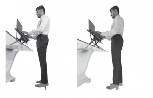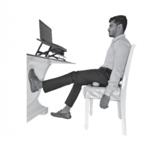 • Using a stick/rolling pin or ball under the foot at a standing desk prevents the fatigue (from standing), enhances posture and increases blood circulation. This is a position that encourages brain activity, improves concentration and creativity, and charges up the brain with ideas, increasing output. This is also a great way to increase NEAT calories for those individuals who have excessive sedentary hours.